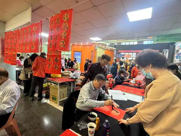 本次活動邀請了多位知名書法家,包括台中醫院退休護理科主任陳東李、藥師宋維、復健師楊芳祺,以及退聯會第二屆會長花澤川和其堂哥花世民等共七位大師親自揮毫送春聯。林釧峰會長表示,現場民眾踴躍索取春聯,場面十分熱鬧。